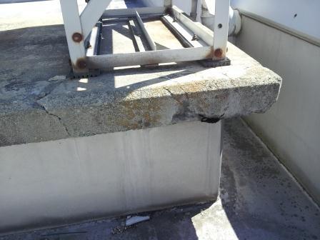 屋上に設置してあるエアコン屋外器が、経年劣化し、ひび割れが発生、このままの
