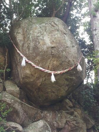 石巻市北上町にある「落ちない岩」、やはり凄かった!境内の崖からご覧のように