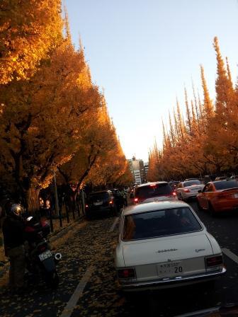 神宮外苑にある「銀杏並木」が、大変な賑わいでした。渋滞に巻き込まれ、交通に