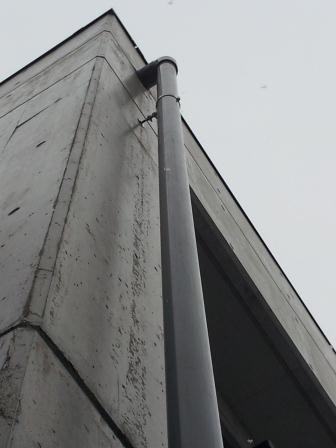 躯体への取付用ブラケットも、赤サビが発生し、外部コンクリート表面が変色して
