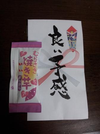 好物の羊羹でした。袋を手にしたときに、お金ではないとうことは、察していたの
