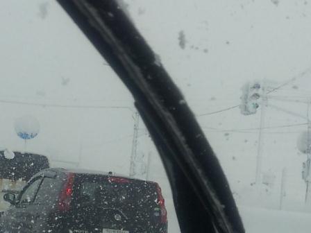 突風と大雪のため、交差点にある信号機に風雪が付着して、吹雪状態ということも