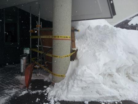 きた雪で埋もれてしまい、まずは「立ち入り禁止」のテープを、周辺をグルリ張り