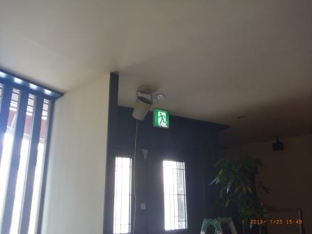 天井面への設置を終え、配線を露出でコンセント部分まで繋ぎ込みを行ないます。