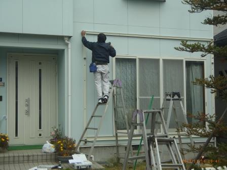 施工を開始。まずは、既存建物の壁面に下地材を取り付ける作業から始めます。