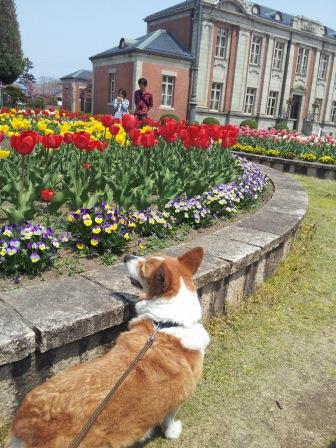 暖かい春の陽気にも誘われ、連れの犬も周りが気になるようで落ち着かない様子。