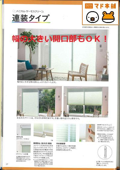 幅の広い窓への対応を可能にする、2台のスクリーンを連続して取り付けるタイプとなります。中央連結部の隙間防止構造が、正面からの光漏れと隙間を抑えます。