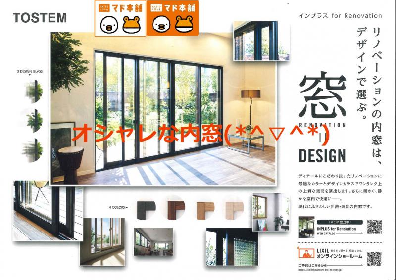 ☆窓のお困りゴト☆👉樹脂内窓「インプラス」なら、悩まず、解決できます!(^O^)/その理由は、❶優れた断熱効果❷日射熱を防ぐ遮熱効果❸快適な空間を保つ遮音効果こだわり抜いた「リノベーション」に最適な「特殊カラー」も4色取り揃えています