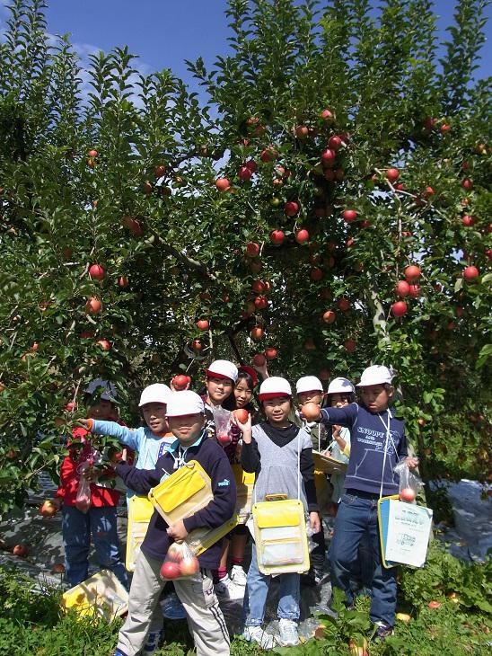 「モリヤ農園」さんで小学生がりんご狩りをしていましたよ(^.^)