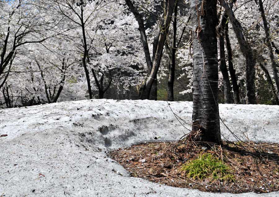 カイラギ荘のところの桜の様子です。 少し雪が残ってますが、満開を少し過ぎてました。