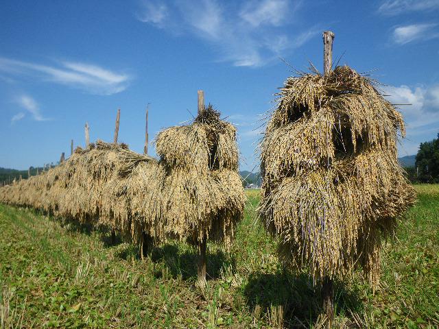 杭掛けした稲も乾く乾く。