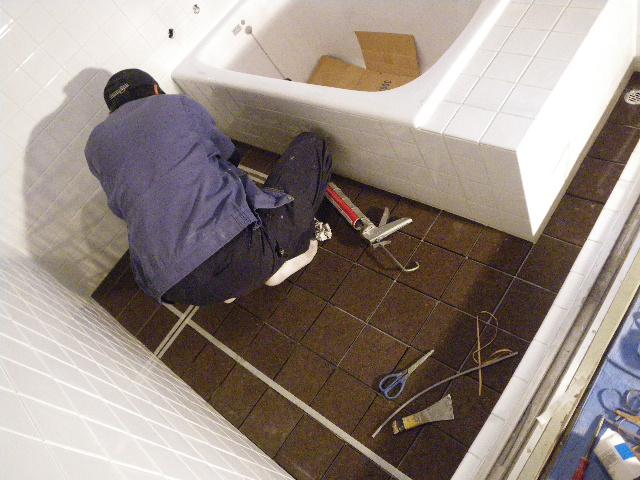 加工場のシンクの配管と蛇口、湯沸かし器の設置と配管完了。