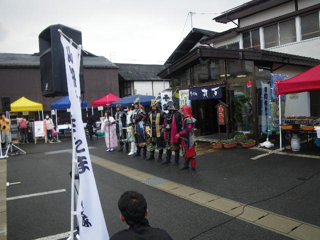 ヨーク近くの蕎麦屋丸万さんとこの駐車場にて行われ、愛の武将隊も駆けつけたのです。