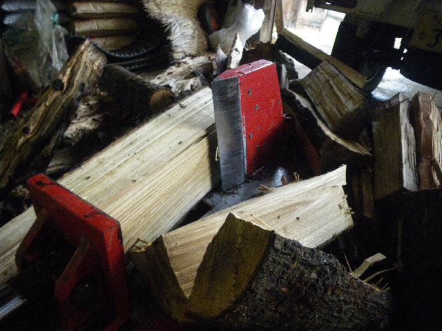 近所の農家さんに油圧のエンジン薪割り機を拝借。
