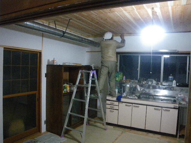 居間と台所の天井の見切りが完成。