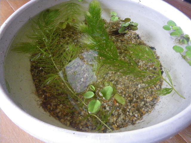 @チャンの熱望実現、メダカちゃんとエビちゃんです。