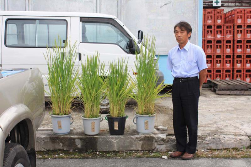 バケツの稲は、人と比べて「胸から肩くらいの高さ」まで生長しました。