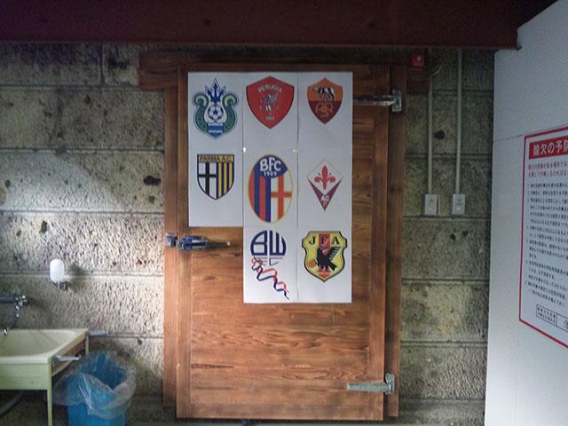 米鶴では、麹室前に中田氏が所属していたクラブチームと日本代表チームのエンブレムを貼り、ささやかながら歓迎のしるしとしました。