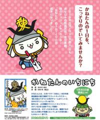 『フリカケかけ放題』で、2009年1月16日より 米沢市直江兼続マスコットキャラクター「かねたん」 きせかえツール(R)の配信が開始されました。 かねたんが行進する!動く!初のアニメーションです! 「かねたん」のきせかえツール(R)は 『フリカケかけ放題』の月額会員に登録 (月額:315円(税込)) することでダウンロードが可能となります。 携帯サイトのアドレスは下記になります。 http://furi-kake.mobi/tr/kanetan/00000001 気に入った方はぜひ使用してみてください。 ■料金 月額315円(税込)/ きせかえツール(R)&デコメール(R)取り放題 ■サービス名 フリカケかけ放題 ■対応機種 iモード きせかえツール(R)対応機種 ■アクセス方法 メニューリスト⇒きせかえツール⇒ イラスト⇒フリカケかけ放題 以前から戦国モバイルでは、米沢特集として 応援していただいているのですが かねたん待受けやデコメなども配信されております。 その他特集として 前田慶次展の紹介や米沢の史跡の紹介 ・上杉景勝ゆかりの史跡 ・直江兼続ゆかりの史跡 ・前田慶次ゆかりの史跡 ・その他の史跡のご紹介 そして史跡までナビゲーションしてくれる という優れもの! ぜひご覧になってみて下さい! この戦国モバイルで 天地人博を見学し、米沢の 史跡巡りいかがでしょうか? |