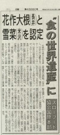 ³§¤µ¤ó¤â¤¼¤Ò°ìÅÙ¤´¾ÞÌ£¤¯¤À¤µ¤¤¡ª ¡ý·ÇºÜ¤µ¤ì¤¿»³·Á¿·Ê¹12·î3Æü¤Îµ»ö¤è¤ê ¿©¤ÎÀ¤³¦°ä»º¤Ë²ÖºîÂ纬¡ÊŰæ¡Ë¤ÈÀãºÚ¡ÊÊÆÂô¡Ë¤òǧÄê ÅÁÅýŪ¤Ê¿©Ê¸²½¤ò¸«Ä¾¤·¡¢¼é¤ë¤¿¤á¤Ë±¿Æ°¤¹¤ë¥¹¥í¡¼¥Õ¡¼¥É¥¸¥ã¥Ñ¥ó¤Ï2Æü¡¢ÆüËܤÎÅÁÅý¿©ºà9ÉÊÌܤ¬¡¢¥¹¥í¡¼¥Õ¡¼¥É¶¨²ñ¹ñºÝËÜÉô¡Ê¥¤¥¿¥ê¥¢¡Ë¤Î¡ÖÌ£¤ÎÈ¢½®¡×·×²è¤ËǧÄꤵ¤ì¤¿¤Èȯɽ¤·¤¿¡£¤³¤Î¤¦¤ÁËܸ©¤«¤é²ÖºîÂ纬¤ÈÀãºÚ¤Î2ÉÊÌܤ¬Áª¤Ð¤ì¤¿¡£ ¡ÖÌ£¤ÎÈ¢½®¡×¤Ï¡¢ÂçÎÌÀ¸»º¤µ¤ì¤ë²è°ìŪ¤Ê²Ã¹©¿©ÉʤȤ¤¤¦¡ÈÂ繿¿å¡É¤«¤éÅÁÅý¿©Éʤòµß¤¦·×²è¤Ç¡¢¤¤¤ï¤ÐÀ¤³¦°ä»º¤Î¿©ºàÈÇ¡£ÆüËܤ«¤é¤ÎǧÄê¤Ï½é¤á¤Æ¡£Åìµþ¤Î´Ý¥Ó¥ë¤ÇƱÆü¡¢ÆüËܤΥ¹¥í¡¼¥Õ¡¼¥É¤ò¾Ò²ð¤¹¤ë¥¤¥Ù¥ó¥È¤ò³«¤¯¤È¤È¤â¤Ë¡¢µ¼Ô²ñ¸«¤·¤Æ9ÉÊÌܤòȯɽ¤·¤¿¡£ ¡ÁÃæÎ¬¡Á ¡¡¤Þ¤¿¡¢ÊÆÂô»Ô¤ÎÀãºÚ¤ÏÀã¤ÎÃæ¤«¤é¼ý³Ï¤¹¤ëÆÈÆÃ¤ÎÌîºÚ¡£¤Õ¤¹¤ÙÄÒ¤äÎä¤ä½Á¤ÏÃϰèÆÃ»º¤ÎÌ£¤È¤·¤Æ¿Æ¤·¤Þ¤ì¤Æ¤¤¤ë¡£º£²ó¤Î»ØÄê¤òµ¡¤Ë¡¢ÀãºÚ¤ÎȪ¤ò¸«¤Ë¹Ô¤¯¥Ä¥¢¡¼¤Î·×²è¤âÉâ¾å¤·¤¿¡£ ¤Þ¤¿ÀãºÚ¤Ë¤Ä¤¤¤Æ¤Ï¾Ü¤·¤¯²¼µ¤Î¥Û¡¼¥à¥Ú¡¼¥¸¤ËµºÜ¤µ¤ì¤Æ¤¢¤ê¤Þ¤¹¡£ ¡ýÊÆÂô»ÔÇÀÎӲݤΥۡ¼¥à¥Ú¡¼¥¸¤è¤ê http://www.city.yonezawa.yamagata.jp/shisei/norin/yukina.html ¡ÖÀãºÚ¡×¤Ï¡¢Á´¹ñ¤Ç¤âÄÁ¤·¤¤Àã¤ÎÃæ¤Ç°é¤ÄÆðÇòÌîºÚ¤Ç¤¹¡£ ¤½¤Î¥ë¡¼¥Ä¤ò¤¿¤É¤ì¤Ð¡¢Àã¹ñ¤Ç¤ÎÀ¸Á¯ÌîºÚ¤Î³ÎÊݤΤ¿¤á¤Ë¾©Î夷¤¿¾å¿ùÂ뻳¸ø¤Î»þÂå¤Ë¤Þ¤Ç¤µ¤«¤Î¤Ü¤ë¤È¤¤¤ï¤ì¤Æ¤¤¤Þ¤¹¡£ ÀãºÚ¤Ï½¾Íè¡Ö¤«¤Ö¤Î¤È¤¦¡×¤È¤¤¤¤¡¢¤½¤â¤½¤â¤ÏÊÆÂô»Ô¾åŰæÃ϶èÆÃ»º¤Î¡Ö±ó»³¤«¤Ö¡×¤Î¡È¤È¤¦¡Ê²Ö·Ô¡Ë¡É¤ò¿©¤·¤Æ¤¤¤Þ¤·¤¿¡£ ¸½ºß¤Î¤â¤Î¤Ï¡¢±Û¸å¤«¤éÅÁ¤¨¤é¤ì¤¿Ä¹²¬ºÚ¤È¤Î¼«Á³¸ò»¨¤«¤éÁªÈ´°éÀ®¤·¤¿¤â¤Î¤È¸À¤ï¤ì¡¢Àã¤È¤Î´Ø¤ï¤ê¤¬¿¼¤¤¤½¤ÎºÏÇÝË¡¤«¤é¡ÖÀãºÚ¡×¤È¤¤¤¦Ì¾¾Î¤¬¤Ä¤±¤é¤ì¤¿¤â¤Î¤È¹Í¤¨¤é¤ì¤Æ¤¤¤Þ¤¹¡£ Â缫Á³¤¬°é¤ß¡¢¸·¤·¤¤Åߤò½Ü¤È¤¹¤ëÅÁÅý¤ÎÌîºÚ¡ÖÀãºÚ¡×¤Ë¤Ï¡¢Àã¤È¶¦¤ËÀ¸³è¤¹¤ëÀè¿Í¤ÎÃηäȡ¢Àã¤ÎÃæ¤Ç¿¤Ó¤ë¶¯¿Ù¤ÊÀ¸Ì¿ÎϤ¬½É¤Ã¤Æ¤¤¤Þ¤¹ ¡ýÅö¶¨²ñ²ñ°÷¤ÇÀãºÚ¤Î¤Õ¤¹¤ÙÄÒ¤±¤òÈÎÇ䤷¤Æ¤¤¤ë¤ªÅ¹ (Í)¸åÆ£¾¦Å¹ ¢©992-0003¡¡»³·Á¸©ÊÆÂô»Ô·¦ÅÄÄ®·¦ÅÄ413-3 TEL¡¡0238-37-5378ì FAX¡¡0238-37-6345 (Í)¤È¤«¤Á¤ä ¢©992-0039¡¡»³·Á¸©ÊÆÂô»ÔÌçÅìÄ®1-3-6 TEL:0238-23-2147 FAX:0238-22-1324 |