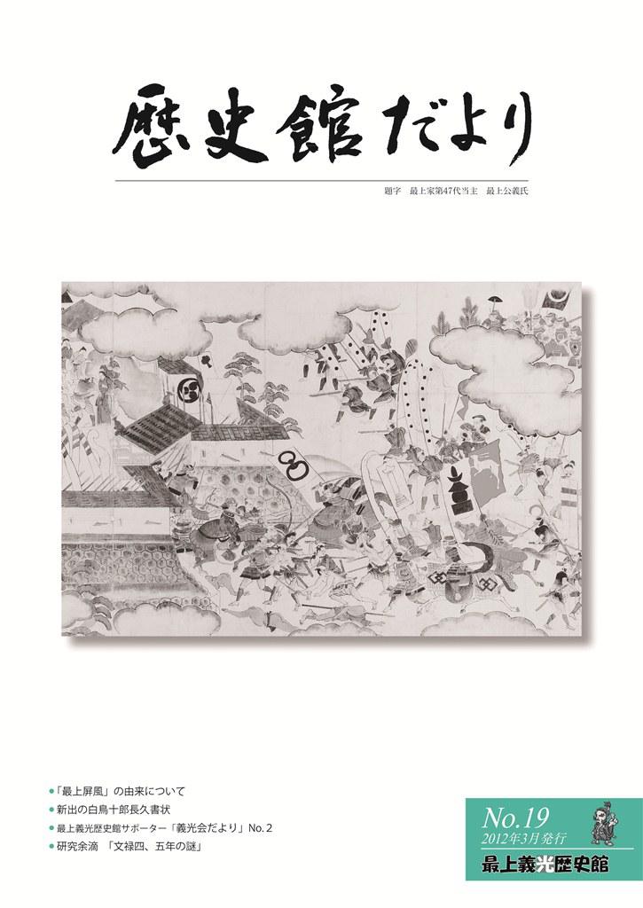 ※遠方でご希望の方は、郵便番号、住所、氏名、TELと「館だよりNo.19 ( )部希望」を明記のうえ希望部数にあわせた金額の切手を同封して最上義光歴史館までご送付ください。