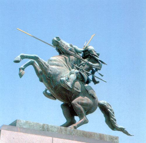 武将の騎馬像としては全国でも屈指の美しさを誇る最上義光の騎馬像です。櫓門を背景にしたその勇姿は、往時の武勇を偲ばせます。