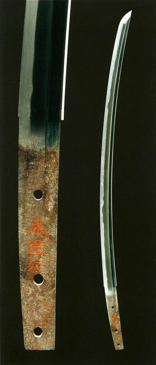 茎は、磨上げ無銘に朱銘で「来國次」と極める。