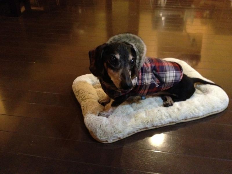 味見係長もダウンジャケットを着ています。犬も寒いのでしょう