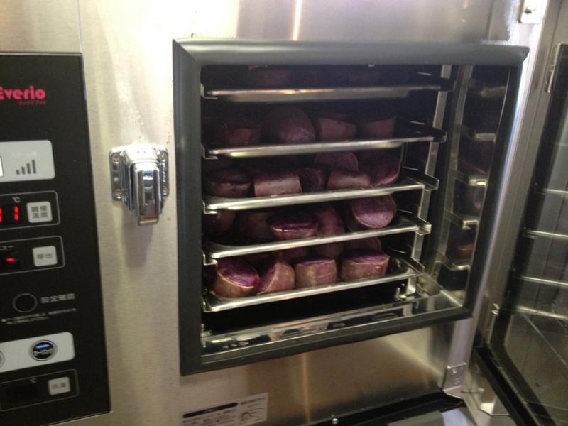 今日は、紫芋のスチーム加工をしております。芋の甘いニオイが店中に!味見係長ベルは、大騒ぎ!芋1個分位味見した様です。満足して寝ております。今夜は、臭いオナラの連発でしょう。犬もオナラをするんですよ!