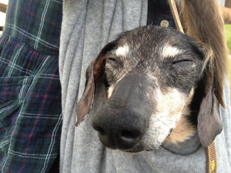 着いていざ散歩開始、味見係長ベルは眠り始めました。