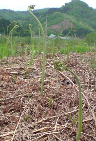 間欠泉オ−ナ−のワラビ園もワラビが出てきました。