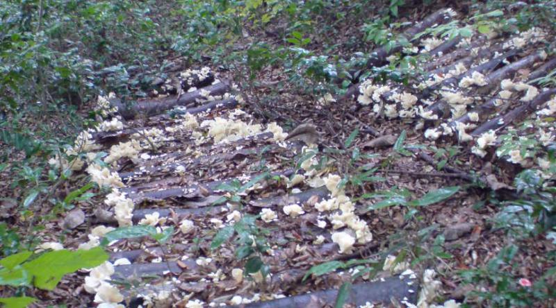 湯の華間欠泉オ−ナ−所有のぶな林で栽培している「ぶなはり茸」です。