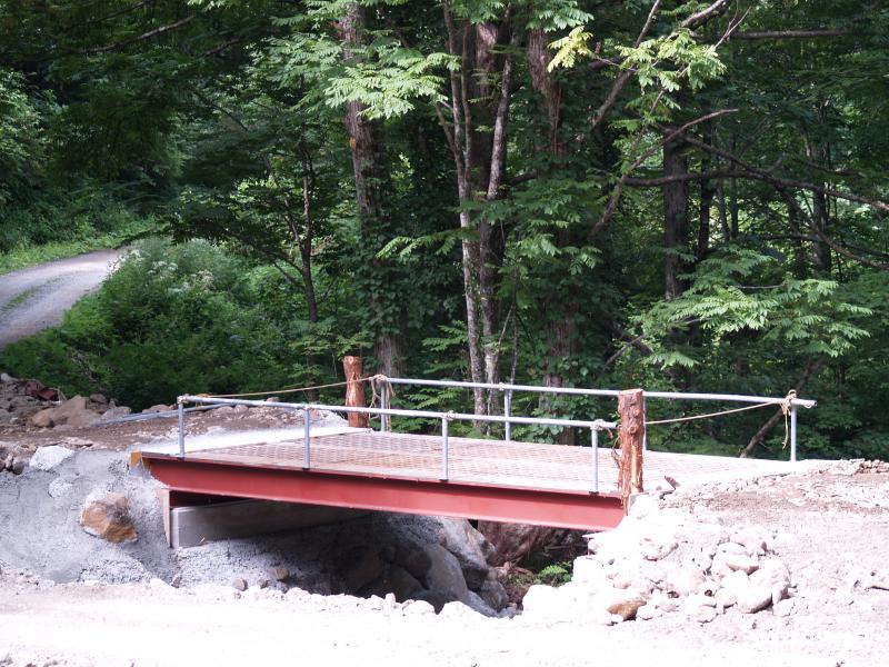 昨年からゲリラ豪雨のたびに橋が流され、皆様方に多大なご迷惑をおかけいたしていましたが、この度、強固な橋が完成し8月19日に開通の運びとなりました。
