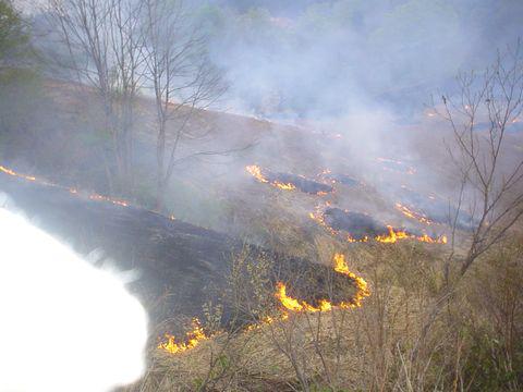 を間欠泉湯の華の旅館用に収穫してから山焼きを