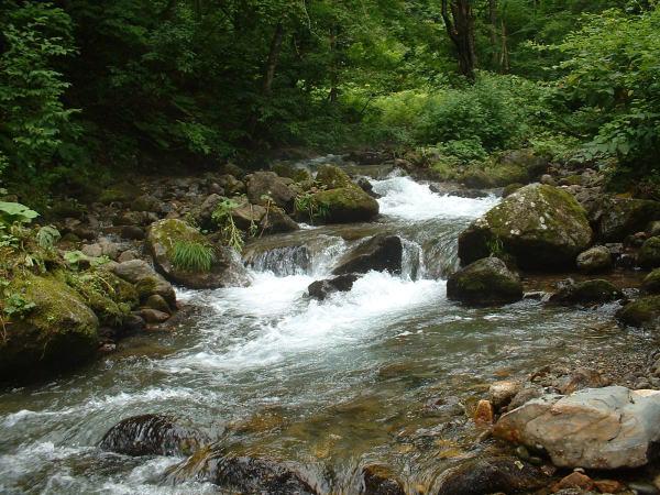 広河原釣堀から砂利道7k区間は渓谷の連続です。