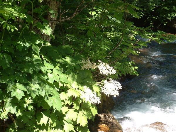 広河原間欠泉の渓谷沿いは山菜の宝庫です。今花を付けているこの矢車草も「あいこ」「しどけ」などと同時に芽を出しおいしそうに見えますが食料にはなりません。この花もそろそろ終わりです。