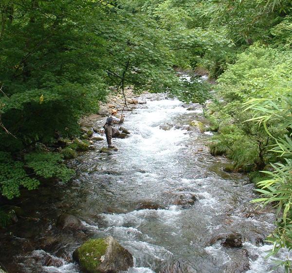 ▼湯ノ沢渓谷と釣り人