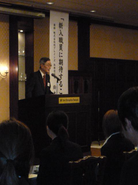 内定式では、特別講師を招き、「新入職員に期待すること」と題した講演を頂いた後、