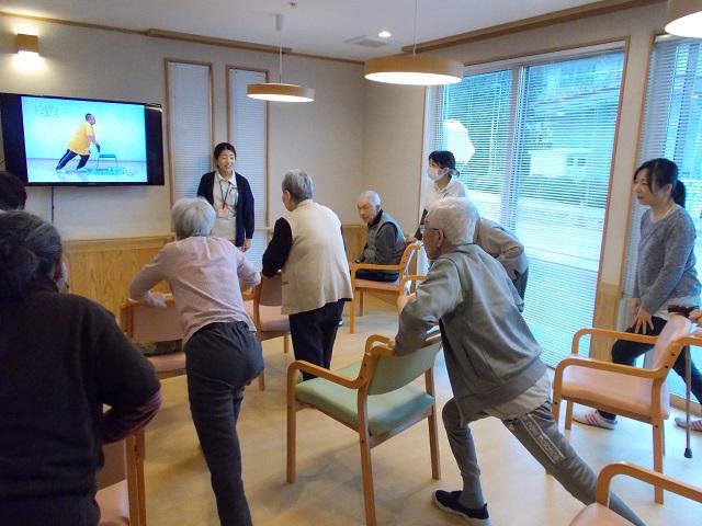 皆様真剣な表情で介護予防、筋力維持、筋力アップ体操に取り組まれておりました。
