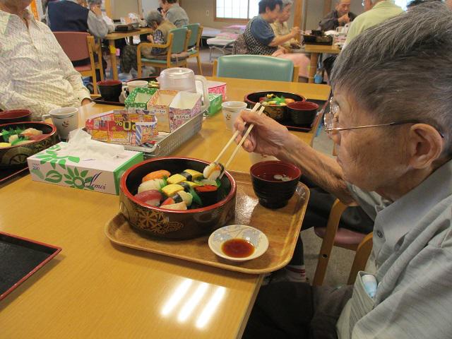 湯の郷くろさわデイサービスでは9月21日『敬老の日』の昼食に、お寿司の出前を