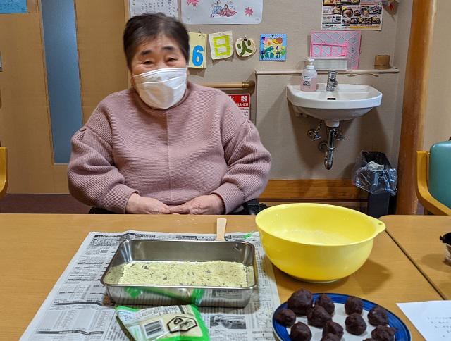 湯の郷くろさわショートステイでは、コロナウイルス感染症予防を徹底しながら、3月に調理レクでうぐいす餅作りを行いました。利用者様みんなで協力して作り、ほうじ茶を飲みながら春の訪れを感じつつ、美味しく頂きました。