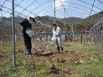 昨年の秋からきれいにした畑に、赤ワイン用のぶどうの苗を130本植えました。新しく仲間に入られた利用者さんも、教えてもらいながら張り切って作業。ぶどうの生育を願いながら、丁寧に水をかけ作業をしました!